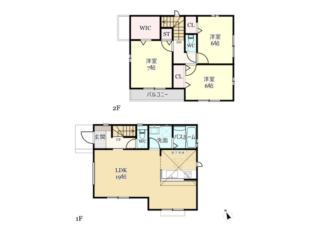 - システムキッチン、シャンプードレッサー、浴室乾燥機、洗浄便座、ウォークインクローゼット、複層ガラス、駐車場2台分、床下収納、トイレ2箇所