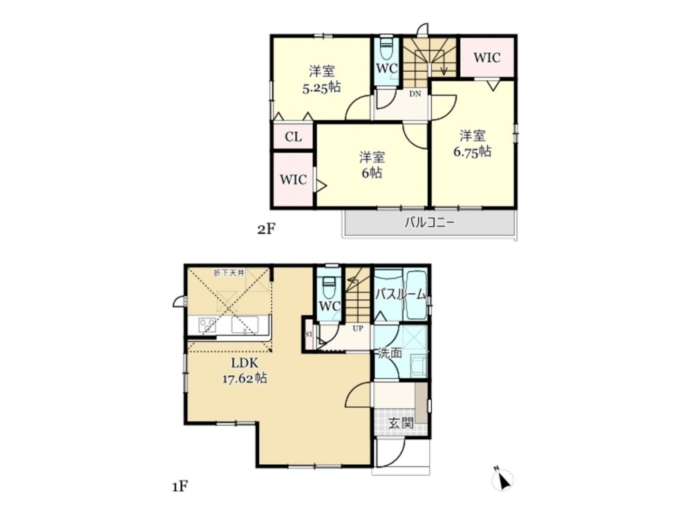 ウォークインクローゼットが2か所と収納力たっぷりな南6m公道に面した新築!