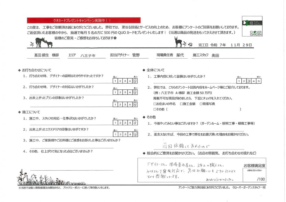 高田様様その他/ご購入 工事アンケート