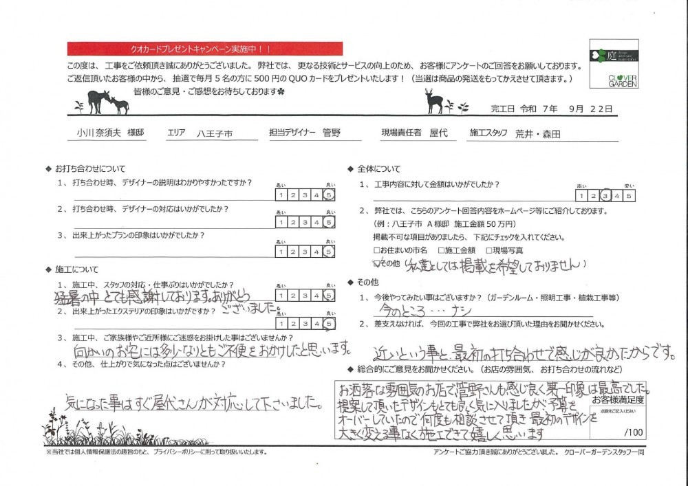 この度は工事のご依頼を頂きまして誠に有難う御座いました。
